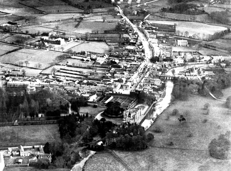 This dramatic aerial view of Antrim town taken 1926, in the foreground to
