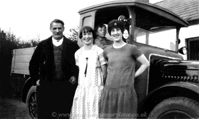 Here next to the lorry in the 1930's the man is unknown, then Annie Baird,