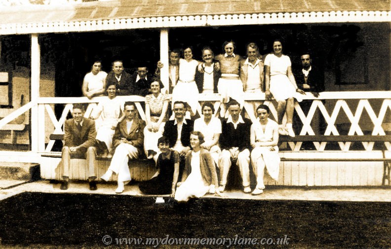 club pavillion. 2nd from the right in the back row is Marjorie Reilly and