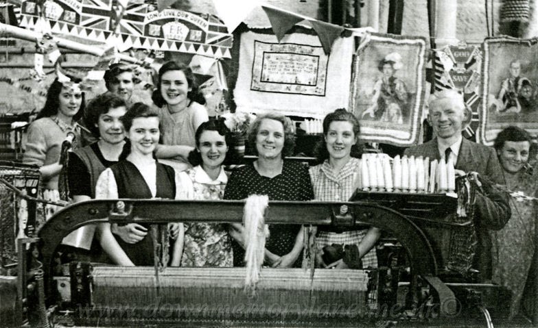 Staff from the Antrim Weaving Company marking the Coronation of Queen Elizabeth