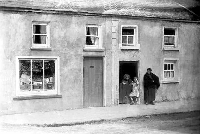 The Dub Tea Rooms and a Grocery shop. Standing in the doorway are two men,