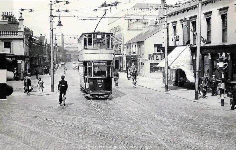 back in 1953. A tram is heading back intto Belfast and a policeman on a bike